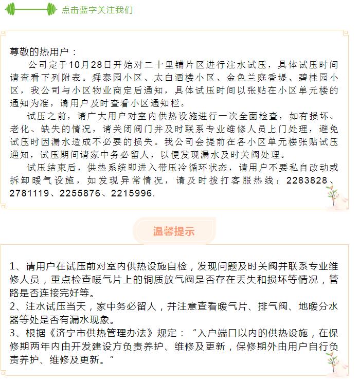 濟(jì)寧運(yùn)河熱力有限公司第三批小區(qū)試壓通知